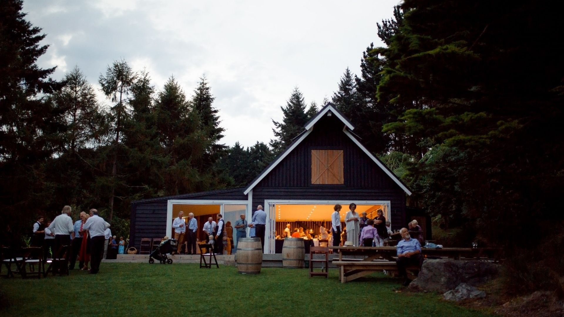 The barn itself can seat up to 140 guests, while outside features include landscaped native gardens, a fire pit, large deck and extensive outdoor lighting revealing the beautiful bush setting by night.