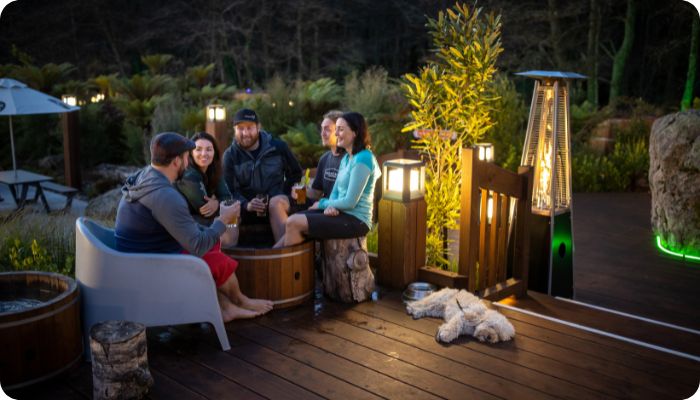 Relax Hard and enjoy the sights and sounds of nature while soaking in your own forest-side cedarwood hot tub, with Secret Spot Hot Tubs. Alternatively, unwind with the whānau in a Shinny Dip while you enjoy a cold drink or a coffee.