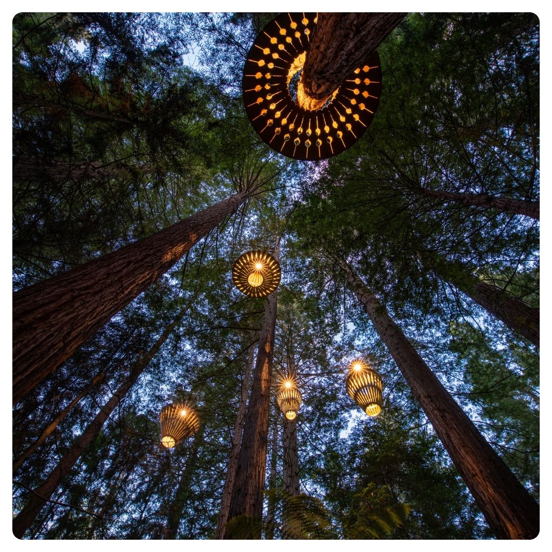 For those who find their calm above the forest floor, this is where the quiet magic begins. Walk high among the redwoods, suspended in stillness and light, and float between 34 exquisite lanterns designed by world-renowned designer David Trubridge.