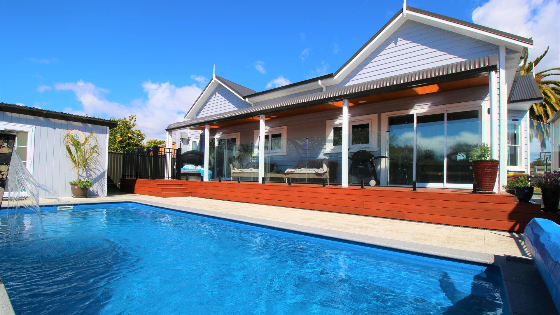 Outside, the full quarter acre property is fully secure with electric gates, and parking for up to four vehicles. A very private thermally heated swimming pool with marble waterfall is kept around 38 degrees C in winter, and features a convenient out building with toilet.