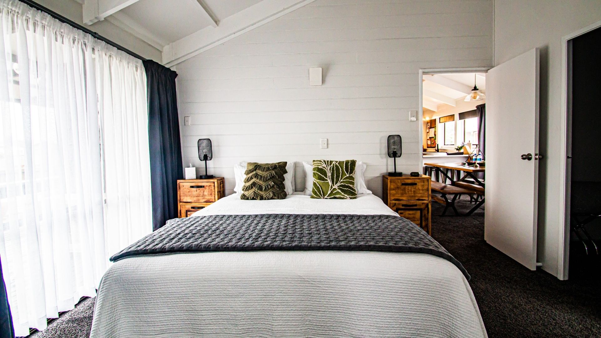 Blackwood offers three bedrooms: a master king room with ensuite, a queen room, and a third bedroom featuring a king bed which can be split into two singles.