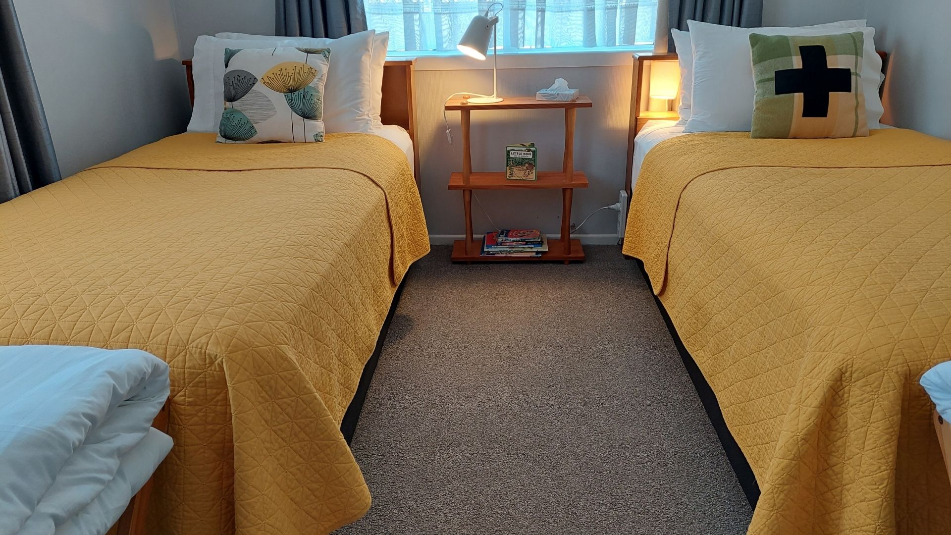 Cottage135 sleeps 4 (plus one infant). The main bedroom features a comfortable queen bed, while the second bedroom has two standard single beds. A porta-cot and highchair are available by request.