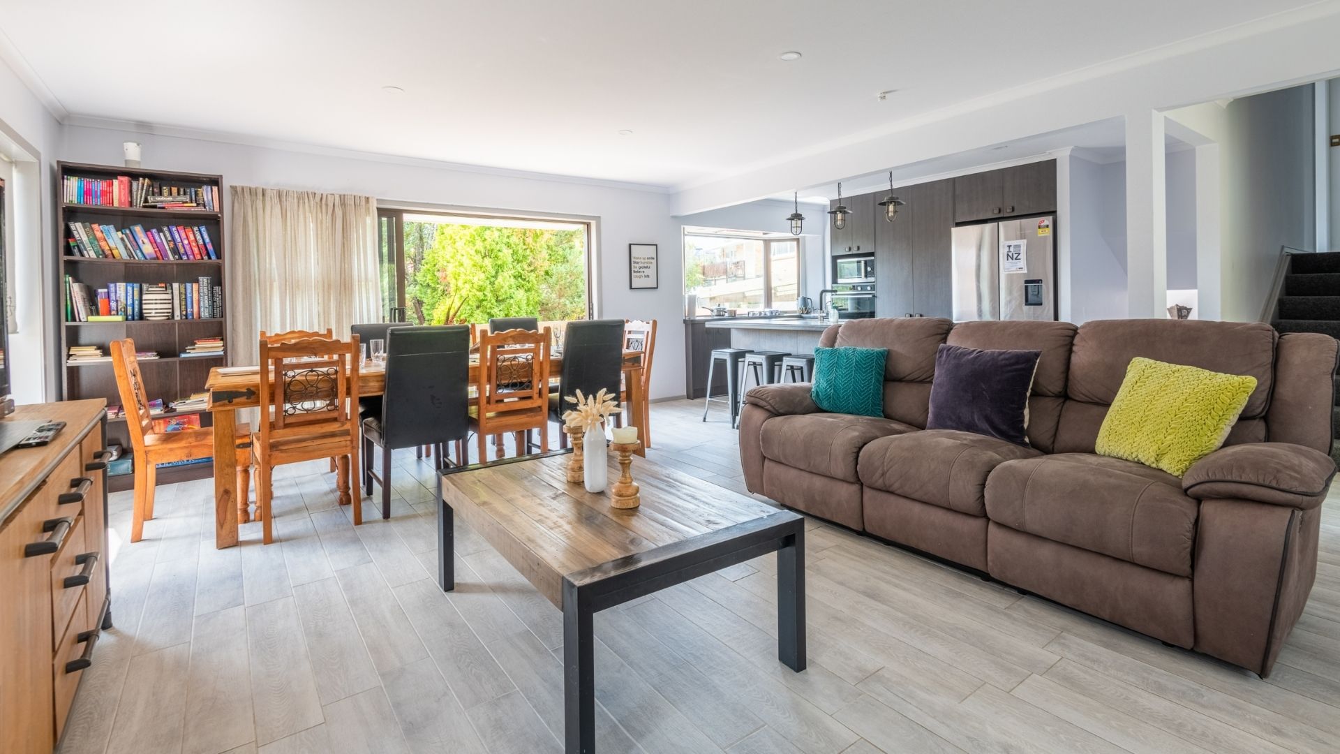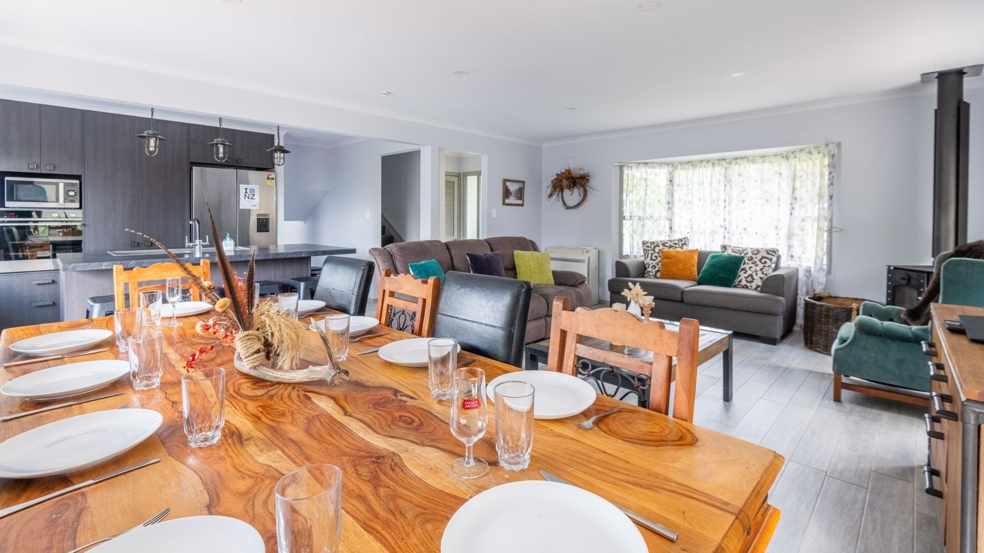 This spacious, open-plan home is a great spot for a large group or multiple families up to 14 people, providing plenty of room for everyone.