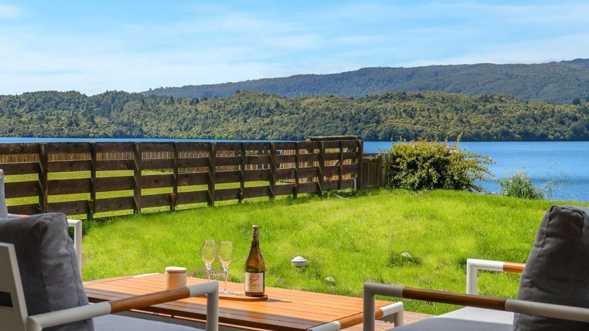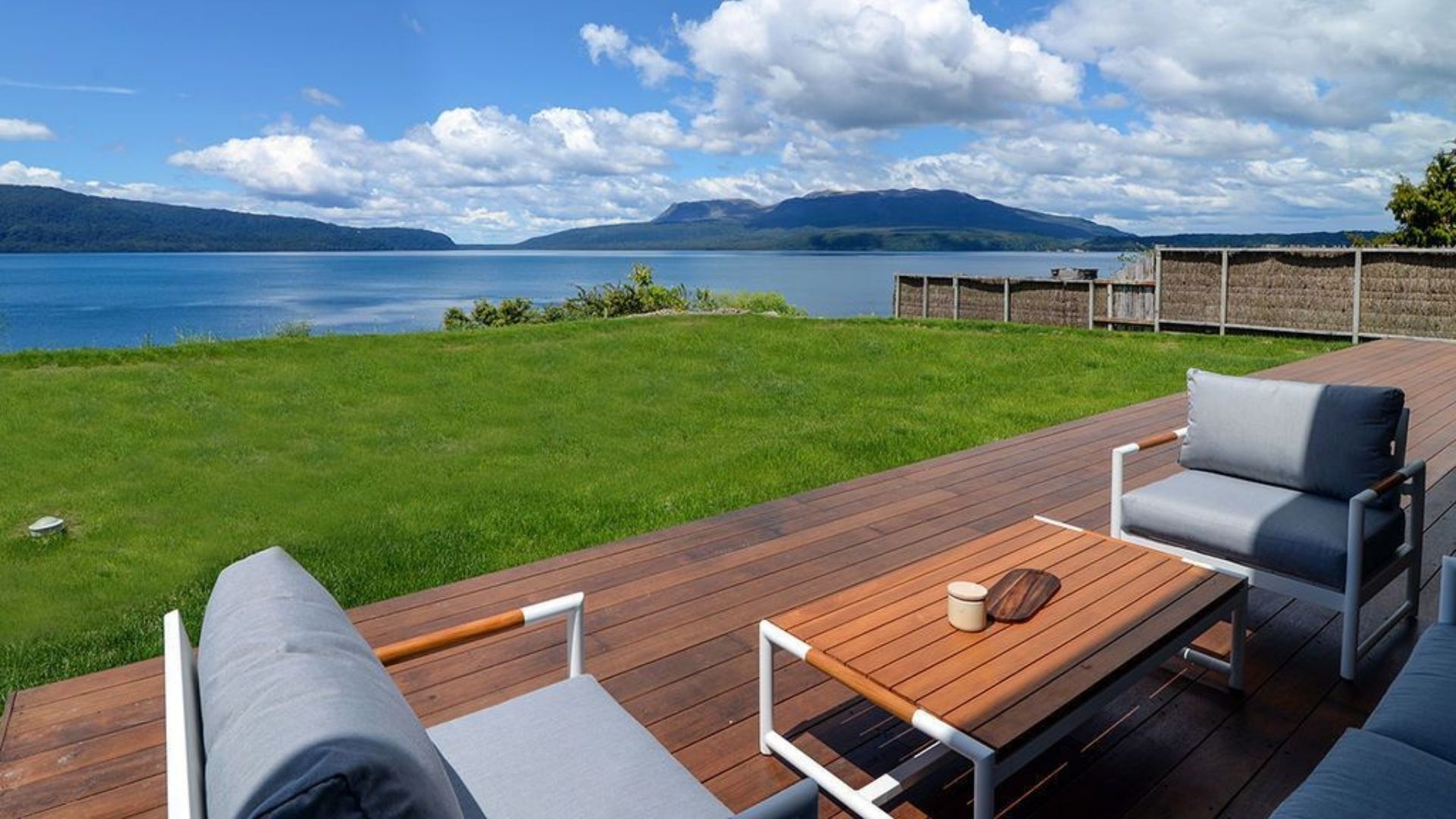 A beautiful designer holiday home at Lake Tarawera, with breathtaking views of the lake and volcano.