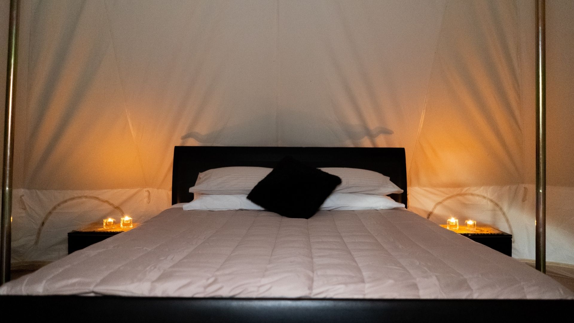 Two beautifully appointed belle tents, each with a king-size bed, keeps everyone cosy and comfortable year round. Bring your own food to prepare in the full-size kitchen with all the amenities including a large BBQ. The large open fireplace, sun-drenched decks, shaded lounged and a giant hot tub overlooking the valley offer all you need to disconnect from the world. Of course, a shower and toilet are also on site (no long drops here!).