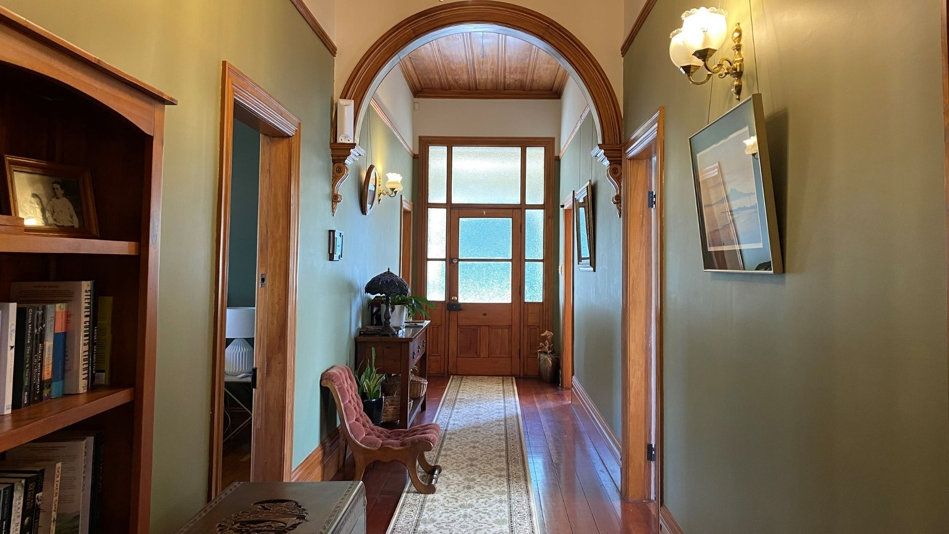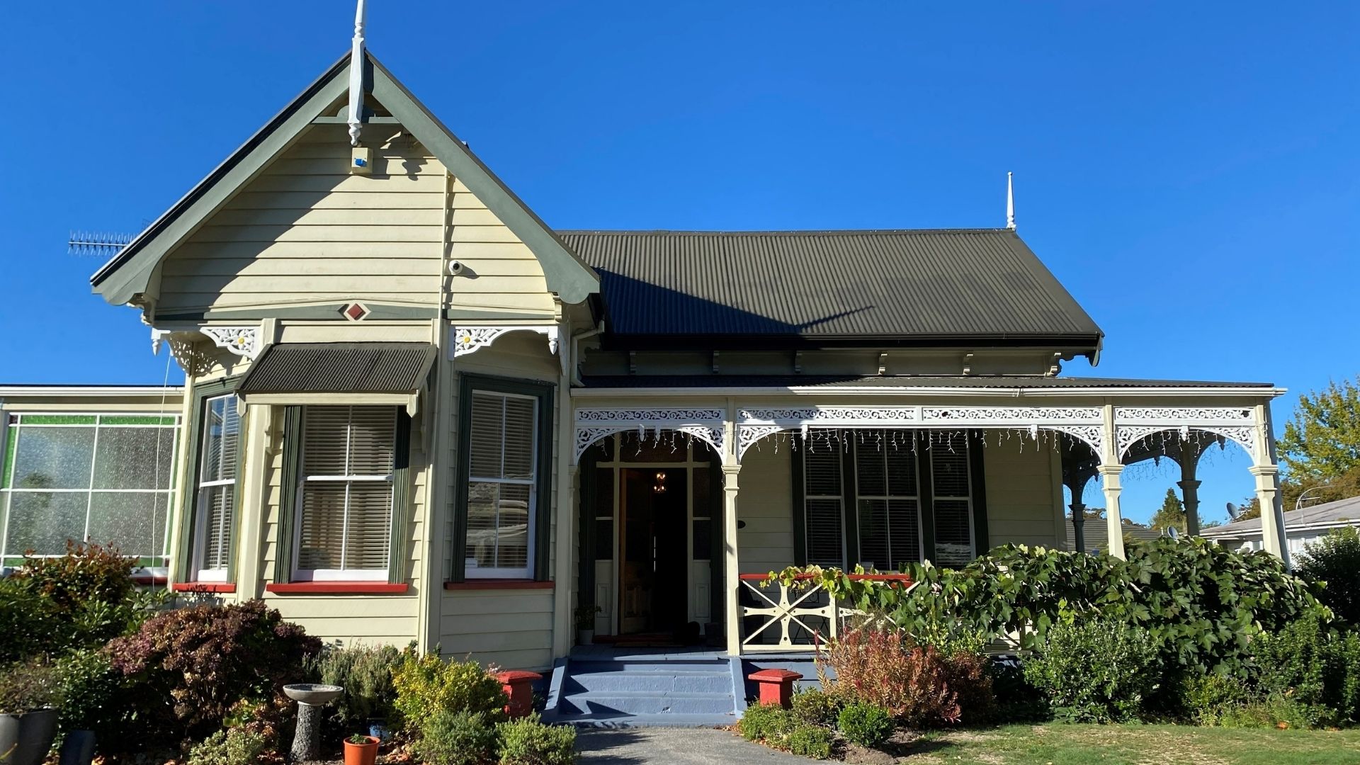 The Heritage NZ Category 2 Historic Place has been lovingly restored, respectfully honouring the home’s era by highlighting the period features such as Union Jack balustrades, intricate fretwork around the wrap-around deck and bay windows, roof finials, and two tall corbelled brick chimneys.