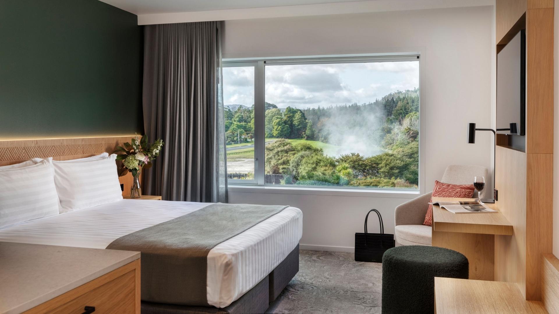 In close proximity to the edge of Whakarewarewa Forest (aka the Redwoods), and overlooking the geothermal Te Whakarewarewa Valley, Rydges Rotorua is an ideal place to ring in a brand new day.