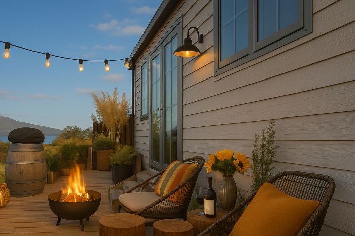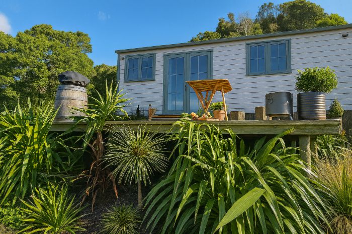 Shepherds Legacy is a luxury glamping escape at Lake Tarawera. This modern shepherd’s hut features a queen bed, kitchen, bathroom, and deck with lake and mountain views. Enjoy the Weber BBQ, fire pit, and outdoor bath. Set on a peaceful hill with sheep and deer below, it's a short walk to the lake. Kayaks and a canoe available. Close to hikes, hot pools, fishing, Redwoods, and Rotorua’s attractions. Breakfast packs and platters available to order.
