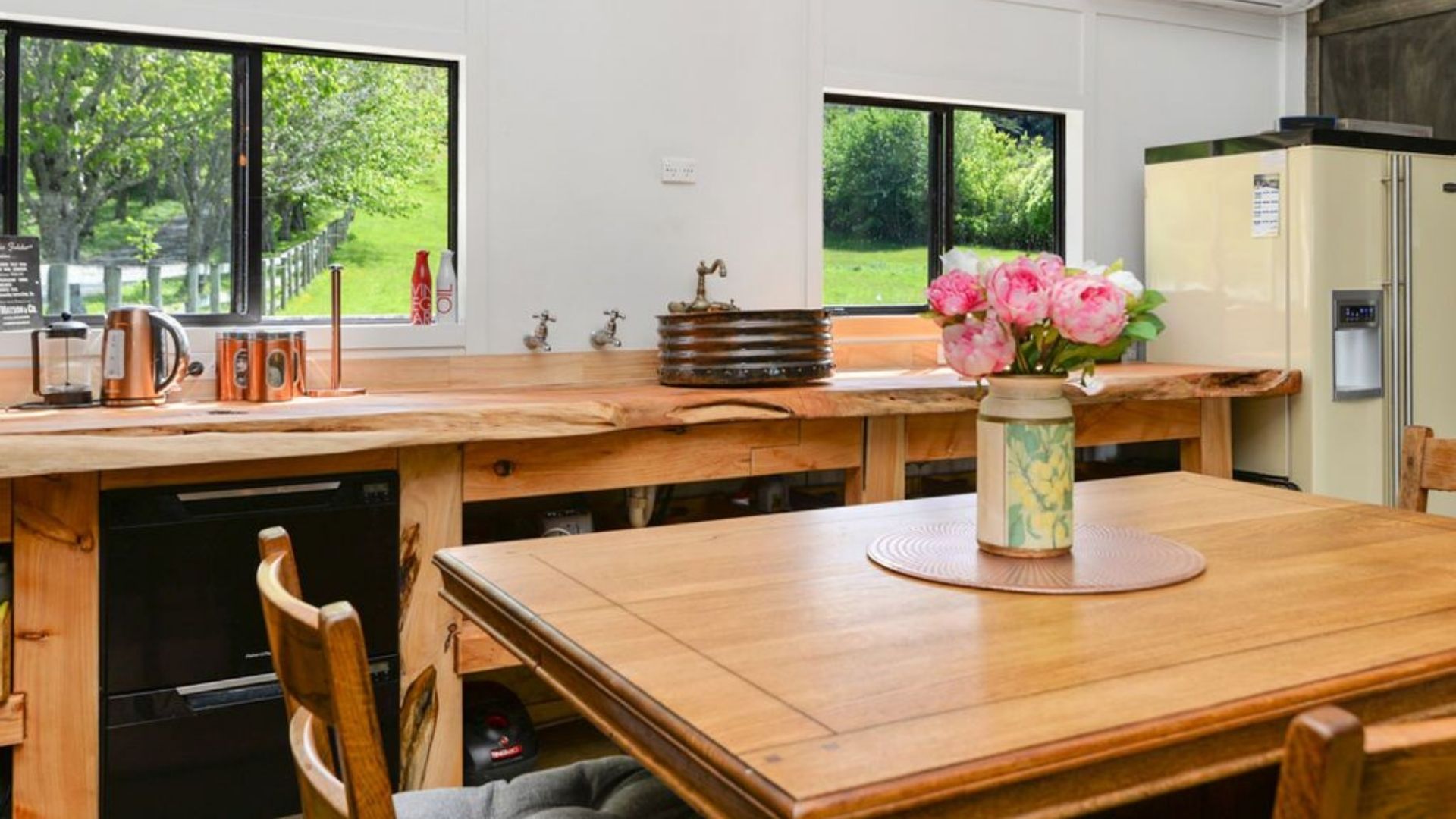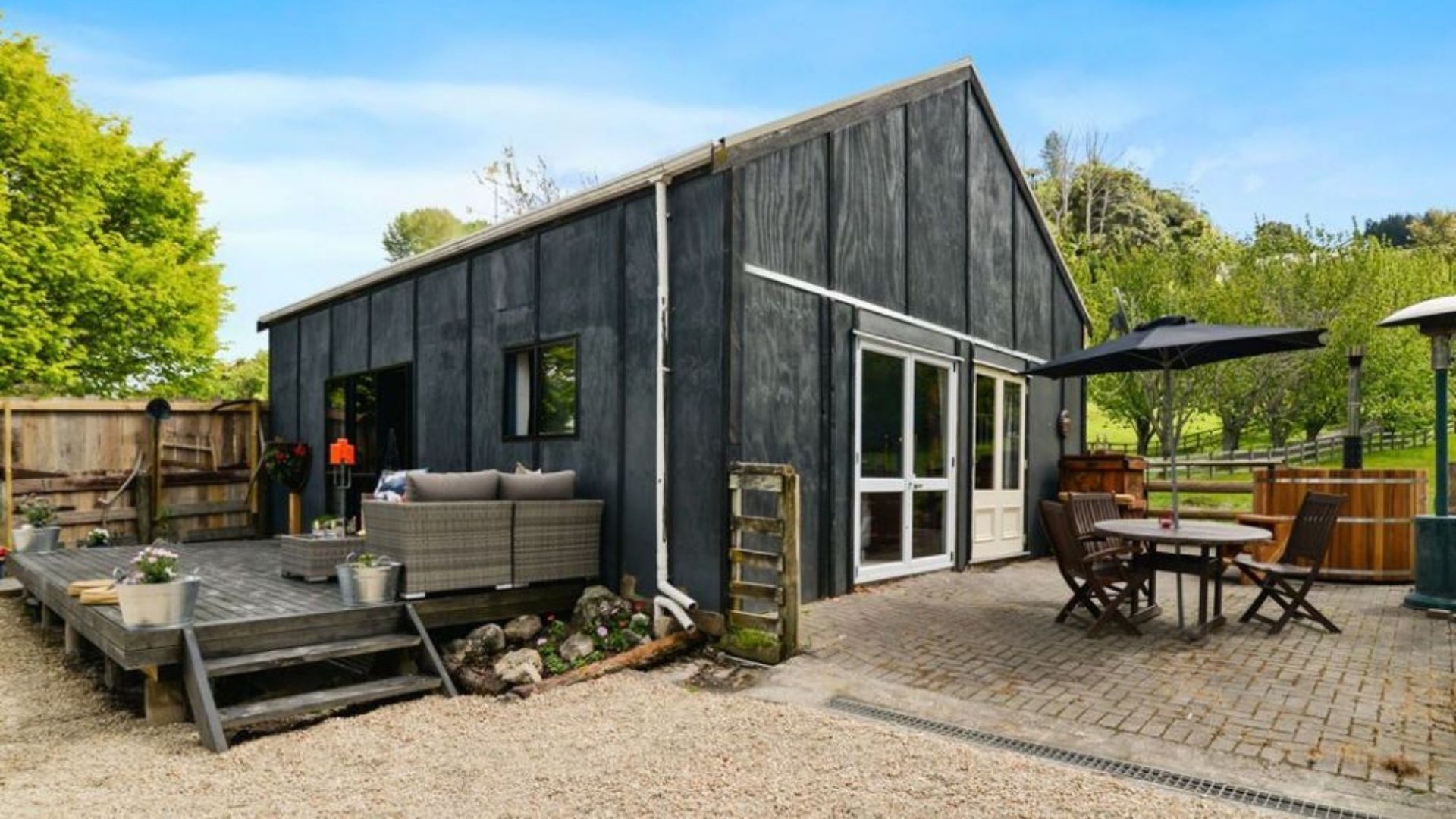 True highlights of The Woolshed are the stunning outdoor living areas on the deck and patio, with wood-fired cedar hot tub, huge barbecue, and bar leaner.