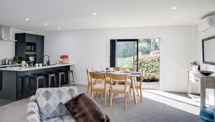 The three-bedroom, two bathroom house has an open-plan layout that’s been positioned to capture the sun in the living areas in the morning, and the bedrooms in the afternoon. You can count on winters being toasty warm, and you’ll stay cool in summer with the use of the heat pump.