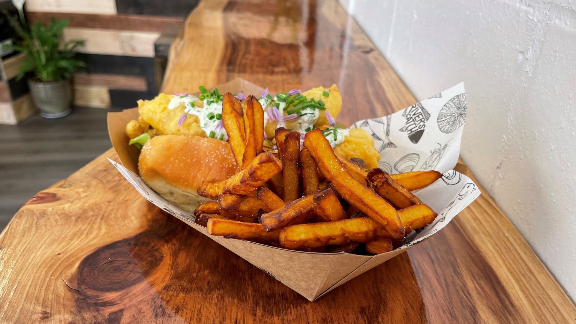 River’s Catch is an upmarket fish-n-chips-n-more shop tucked away in the tree-lined streets of Sunnybrook. Proprietor Isabel loves to have fun with flavours, adding her own touch to traditional Kiwi comfort foods by harkening back to her Filipino heritage.