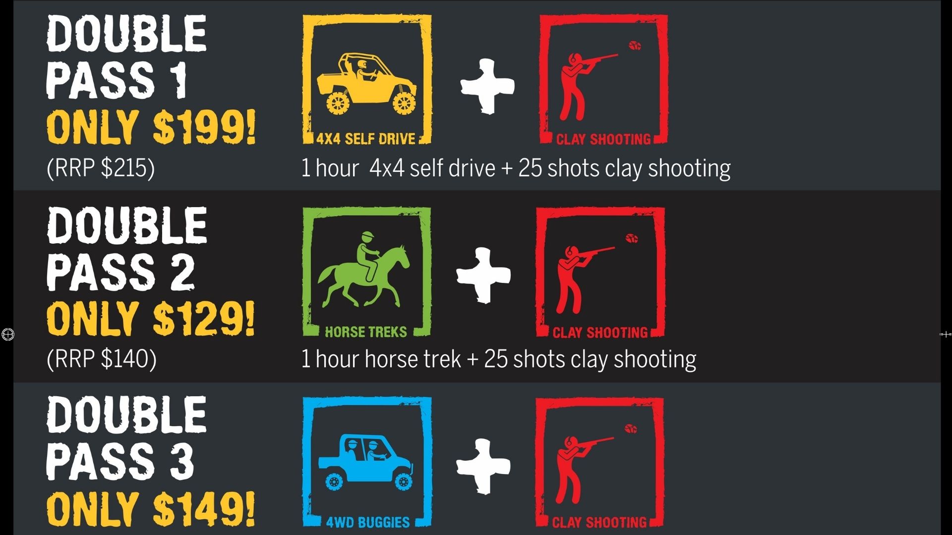 We operate in all weather conditions and provide our customers with wet weather gear when necessary. Covered in shoes are essential and warm clothing in winter is recommended. Our Clay bird Shooting range is a dedicated, covered facility and is suitable in all weather conditions. Rain does not stop play at Adventure Playground!! We offer a range of Combo deals so you can mix & match to maximise the time you spend with us.