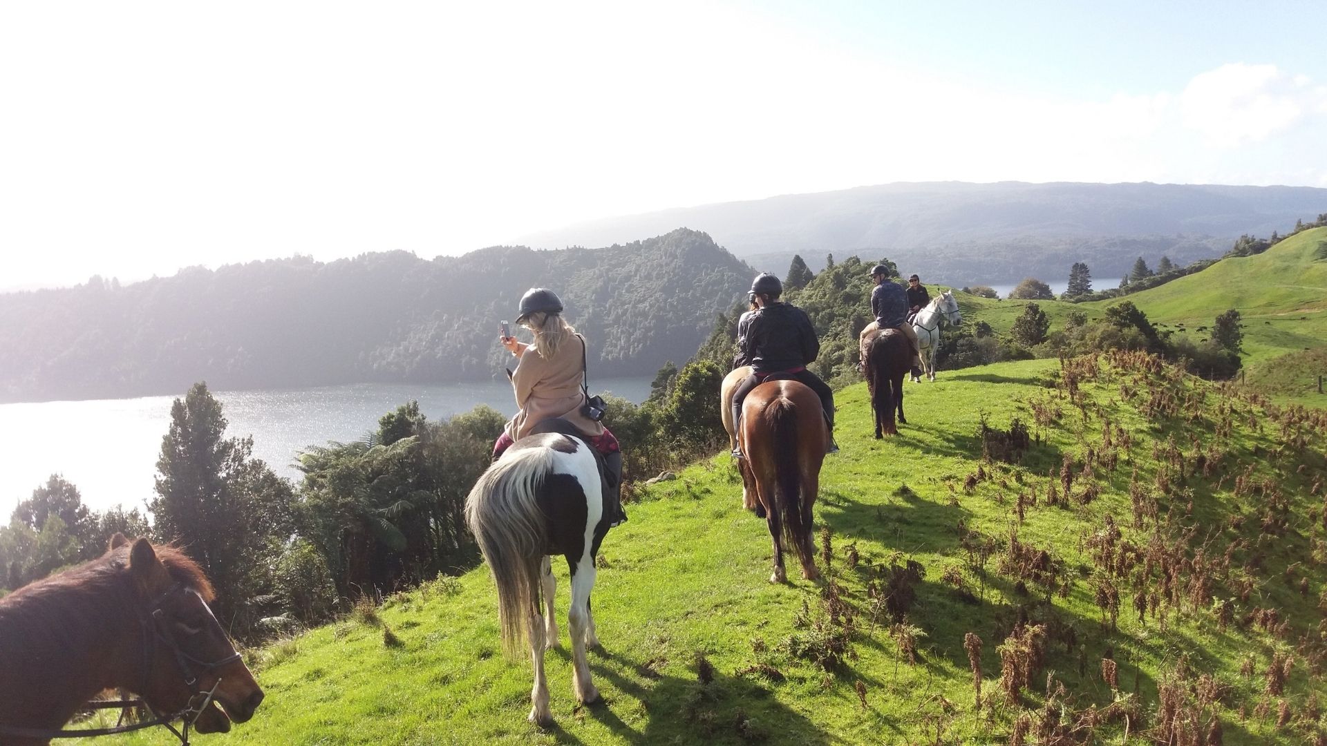 Trek on horseback through 500 acres of native bush and 1,500 acres of working sheep and cattle farm with stunning views of Mount Tarawera and lakes Okareka and Tarawera.
