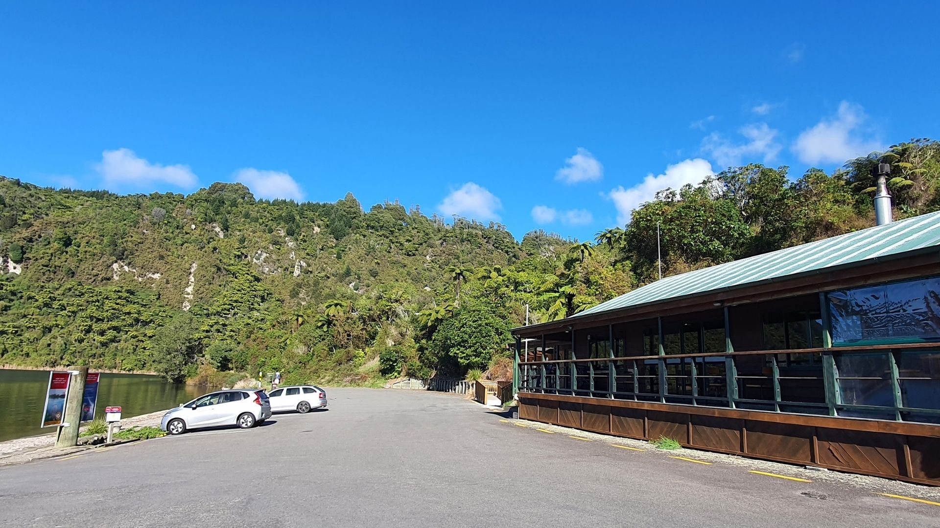 The Tarawera Landing area has a café, public toilets and a boat ramp and jetty.
