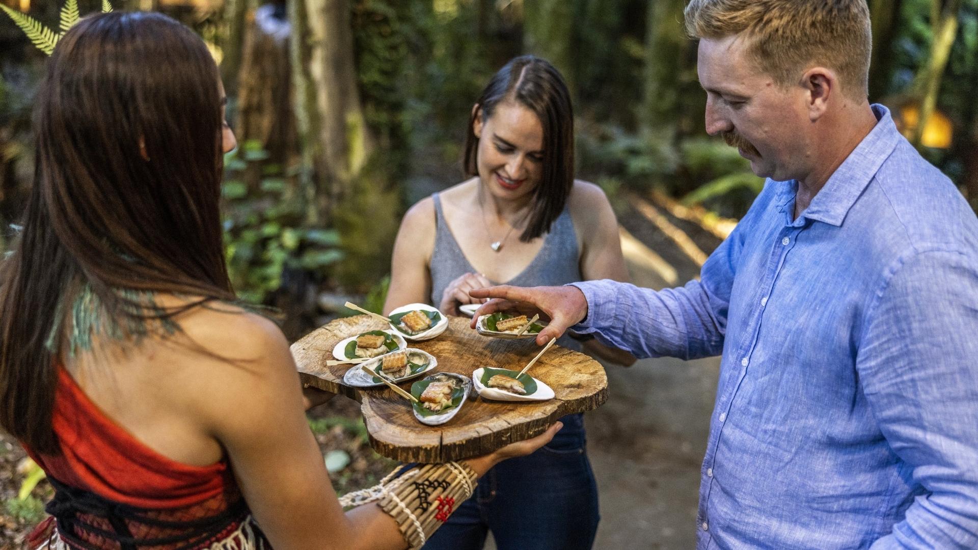 For Māori, kai is integral to any special gathering, so you’ll experience the mystical Ahi Taitai (fire ceremony) before stepping in to the tawa forest canopy for seasonal kai horotai (canapés) and a lantern-lit walk to a lavish three-course family-share hākari (feast).