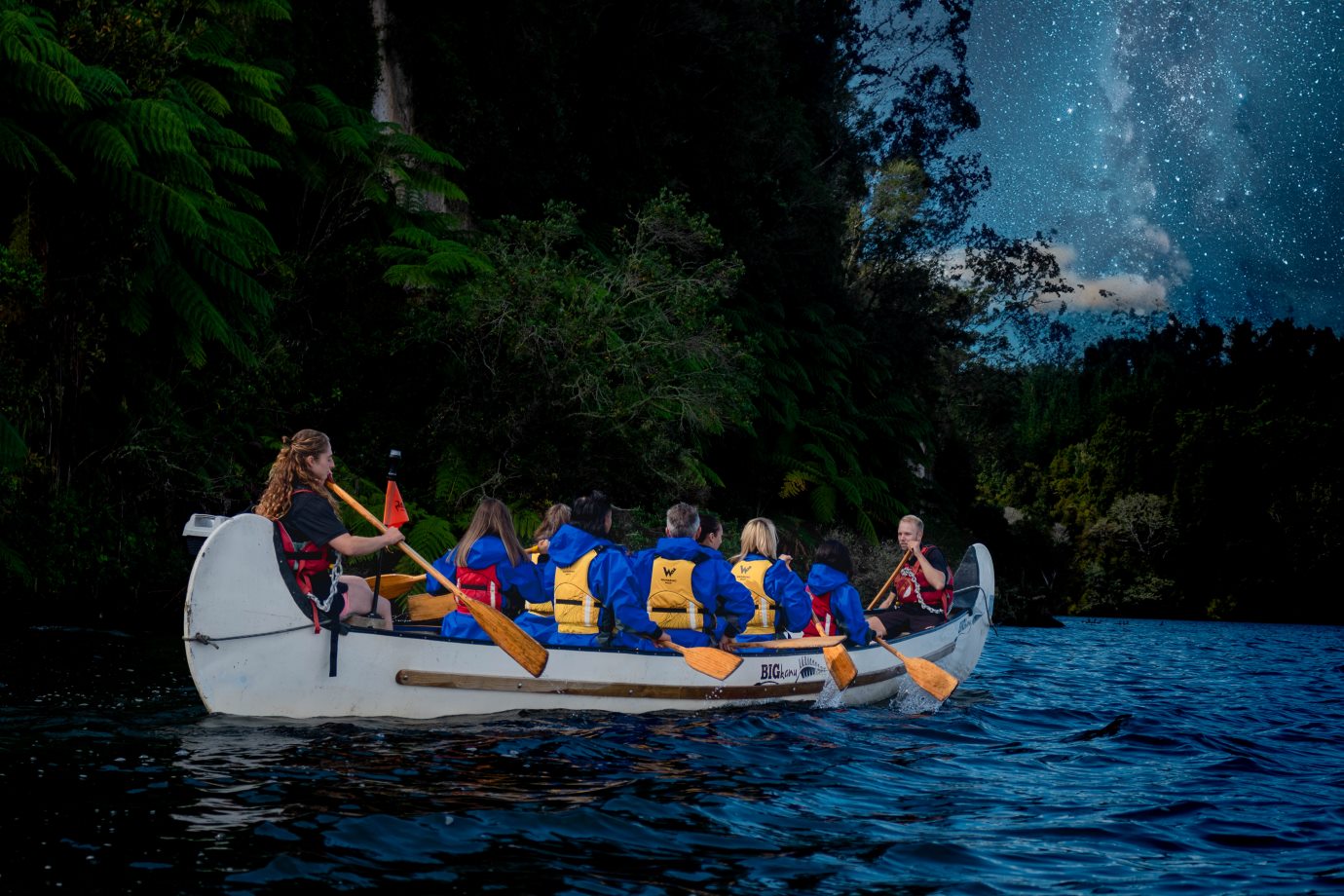 Paddle along the shoreline of Lake Rotoiti, cruising past the cascading native bush leading to a hidden glow worm cave. Here you will be greeted by a constellation of glow worms, emerging later to be meet by starlit waters. Journey back to shore underneath the Milky Way. Suitable for all ages.