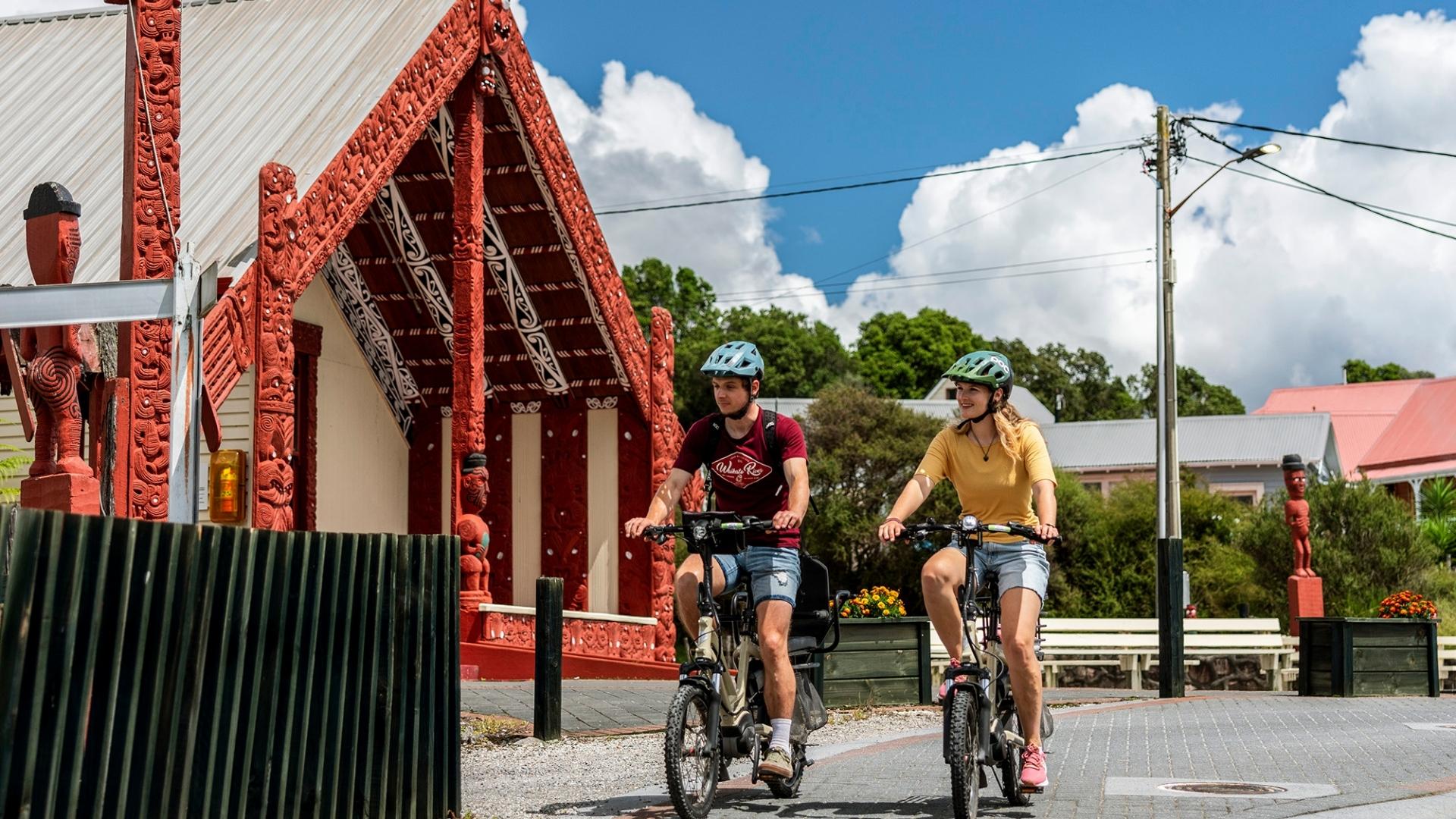 After taking in the stunning sights of bubbling geysers and the varying shades of hot spring lakes and pools, you can continue your e-bike experience through to the world-famous Whakarewarewa Forest, just a five-minute ride away. Book online and pre-order a Picnic Hamper to enjoy along the way, or bring your own hamper.